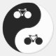 O sinal de equilíbrio de yin-yang com uma bicicleta preta na metade branca e uma bicicleta branca no preto. Bicicleta é bom para o corpo e a mente