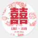 Adesivo Redondo Símbolo de Dupla Felicidade Estilo Dragão Branco