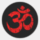 Adesivo Redondo Símbolo de Om Vermelho Crachatado em Preto
