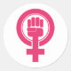 Este símbolo apresenta um punho cor-de-rosa erguido no símbolo de sexo feminino.