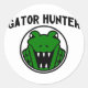Simples gator verde-dentado sorridente em um contorno circular preto criando um símbolo com as palavras "Gator Hunter" acima em uma fonte sul divertida.