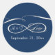 "Símbolo Infinito Sinal de Sinal de Amor Marinho Azul Vestido Clássico Arredondado." Tipografia elegante com símbolo infinito e suas iniciais e data de casamento. Marinho azul e branco. Concebido por Audrey Jeanne Roberts, artista e designer internacionalmente licenciados, copyright.