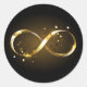 Símbolo infinito de joias Dourado com estrelas douradas sobre fundo preto. Design com estrela dourada.