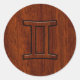 Adesivo Redondo Símbolo moderno Gemini Zodiac em Mahogany como imp