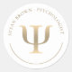 Adesivo redondo com imagem de símbolo Psi dourado. Perfeito para psicólogos.