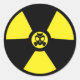 O símbolo radioativo preto e amarelo com uma máscara de gás no círculo central.