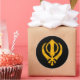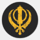 Adesivo Redondo Símbolo Sikh Khanda Amarelo crachado em preto
