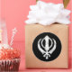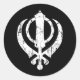 Adesivo Redondo Símbolo Sikh Khanda branco crachado em preto