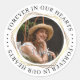Simpatia Funeral Foto Memorial Sticker. Passe com uma foto da pessoa que está sendo lembrada, o título simpático "Para sempre em nossos Corações", seu nome e datas de nascimento/morte. Este autocolante pode ser usado para a Celebração do Dia da Vida, Dia do Memorial e funerais, ou enviado como autocolante em um envelope ou colocado em um presente para um membro da família ou amigo.