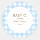 Adesivo Redondo Simple Blue Gingham Baby Shower Sticker