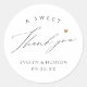 Simple thank you stickers feature modern script and gold color heart shape, elegant and fun, great personalized gift and favor stickers for modern classic wedding.