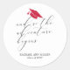 Simple Minimalist Script the Adventure Begins Red Hat Graduation Sticker.