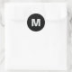 Adesivo Redondo Simple Modern Light Gray on Black Monogram Initial