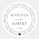 Obrigado de casamento preto e branco que você cola pode ser personalizado com os nomes da noiva e do noivo e a data do casamento.