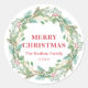 Vinheta de Natal elegante com "Feliz Natal" junto com seu nome familiar e ano em vermelho, cercado por uma coroa verde. Estes adesivos de férias fazem selos de envelopes de excelente para os seus cartões de Natal ou como etiquetas de presentes.