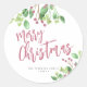 Adesivo Redondo Simples escritura vermelha de Natal elegante