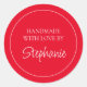 Adesivo Redondo Simples Feito à Mão com Nome Vermelho