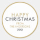 Moderno adesivo redondo Feliz Natal elegante para você personalizar com a sua mensagem de férias e o nome da família. Criado por Thisisnotme©