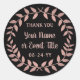 Adicione um toque personalizado de finalização aos favoritos para festas e agradeça as notas com adesivos personalizados da linha de soleira. Toda a redação nesta modelo é simples de personalizar para qualquer ocasião, como casamento, chá de panela, graduação, festa de aniversário, aniversário ou aposentadoria. Altere ou exclua qualquer texto para fazer selos de envelopes para convites, anúncios ou salvar as datas. O design botânico preto-e-rosa moderno apresenta uma falso coroa rosa-dourada da folha laurel, caligrafia rustica e tipografia na moda-. Observe que o ouro rosa é impresso a cores, não em folhas metálicas. Essas elegantes etiquetas redondas adicionam um toque exclusivo personalizado a uma celebração especial do dia.