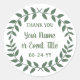 Adicione um toque personalizado de finalização aos favoritos para festas e agradeça as notas com adesivos personalizados da linha de soleira. Toda a redação nesta modelo é simples de personalizar para qualquer ocasião, como casamento, chá de panela, graduação, festa de aniversário, aniversário ou aposentadoria. Altere ou exclua qualquer texto para fazer selos de envelopes para convites, anúncios ou salvar as datas. O design botânico verde e branco moderno apresenta uma coroa de louros, caligrafia rustica e tipografia na moda clássica. Essas elegantes etiquetas redondas adicionam um toque exclusivo personalizado a uma celebração especial do dia.