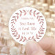 Adicione um toque personalizado de finalização aos favoritos para festas e agradeça as notas com adesivos personalizados da linha de soleira. Toda a redação nesta modelo é simples de personalizar para qualquer ocasião, como casamento, chá de panela, graduação, festa de aniversário, aniversário ou aposentadoria. Altere ou exclua qualquer texto para fazer selos de envelopes para convites, anúncios ou salvar as datas. O design botânico moderno, rosa e branco, apresenta uma falso coroa rosa-dourada da folha laurel, caligrafia rustica e tipografia na moda-. Observe que o ouro rosa é impresso a cores, não em folhas metálicas. Essas elegantes etiquetas redondas adicionam um toque exclusivo personalizado a uma celebração especial do dia.