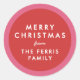 Adesivo Redondo Simples, rosa e vermelha, presente de Natal feliz
