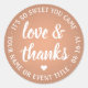 Adicione um toque personalizado aos favoritos para festas e agradeça suas notas com adesivos circulares personalizados "amor e obrigados" / selos de envelopes. Toda a redação nesta modelo é simples de personalizar para qualquer ocasião, como casamento, chá de panela, graduação, festa de aniversário, aniversário ou aposentadoria. O design de folha de alumínio de cobre apresenta a caligrafia moderna do script no nome do evento de tipografia central e na moda e data em um círculo. Observe que cobre é impresso a cores, não metal. Como opção, altere o texto curvo para um nome e endereço para fazer etiquetas de endereço de retorno redondo. Essas etiquetas elegantes adicionam um toque exclusivo e personalizado a uma celebração de dia especial.