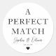 Um Clássico Negro Obrigado Vestido de Casamento com "A Match Made in Heaven" em uma fonte elegante moderna clássica. Você pode personalizá-lo facilmente com seus nomes e data de casamento.
