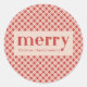 O adesivo de Natal simples e moderno apresenta um padrão de verificação de xadrez vermelho e creme com o seu nome e feliz em tamanho grande. Por favor, compre esta coleção de férias de Natal para coordenar convites e acessórios de correio!