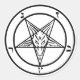 adesivo com sinal de bapomete, um símbolo satânico.