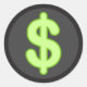 Adesivo Redondo Sinal de dólar verde em vinhetas de fundo escuras