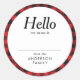 Esses adesivos de reagrupamento familiar chic apresentam um design contemporâneo e elegante com seu nome familiar personalizado na tipografia moderna na xadrez de búfalos. Os autocolantes dizem "olá" junto com uma linha para cada membro da família escrever o seu nome. Decoração do partido perfeito para a sua celebração familiar moderna.