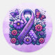 Vinhetas com uma fita de sensibilização do Guerreiro MCAS em roxo com bolinhas brancas, flores e borboletas.