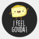 Adesivo Redondo Sinto Gouda Engraçado Queijo Engraçado Pun Dark BG