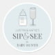 Este adesivo chic e moderno de chá de fraldas para garotos "sip & see" apresenta uma garrafa de alimentação para bebês e um vidro de champanhe sobre um fundo azul claro para bebês. Altere a cor de fundo e personalize para suas necessidades. Você pode encontrar mais produtos correspondentes na minha loja.