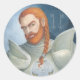 Sir Kaye, com cabelos ruivos e salobras, é representado vestindo armadura prateada ornamentado, apresentando um símbolo de triskelion no peito e seu casaco de braços no fundo. A expressão é estática e intensa, destacando um sentido de força e determinação. Esta imagem é da expansão de Legendas Artrurianas da Sorcery: Realm Contestado.