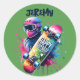 Celebre em estilo com nosso autocolante monograma personalizado, com um patinador de moda vestido e segurando seu skate. Este adesivo vibrante mostra o nome do celebrante de aniversário em uma fonte ousada e atraente, capturando perfeitamente o espírito festivo. Ideal para qualquer entusiasta do skate, este adesivo adiciona um toque divertido e pessoal à celebração do aniversário.
