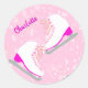 Adesivo Redondo Skates personalizados de desenho de gelo rosa kawa
