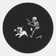 Adesivo Redondo Skeleton Chasing French Bulldog Biting Leg Bone Ha