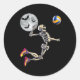 Adesivo Redondo Skeleton jogando voleibol Feliz Dia das Bruxas