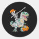 Adesivo Redondo Skeleton Riding Dancing Dab Dinosaur T Rex Hallowe
