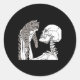 Adesivo Redondo Skeleton Segurando Um Gato Preguiçoso De Halloween