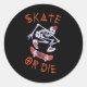 Adesivo Redondo Skeleton Skateboarder skate ou die