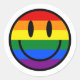 Este trabalho de arte colorido apresenta um smiley face arco-íris.