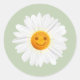 A design floral de flor margarida apresenta uma margarida branca com núcleo de flor smiley face em estilo simples e mínimo, trazendo sentimentos felizes e positivos. A cor de fundo é personalizável. Clique no botão Personalizar e escolha sua cor favorita!