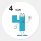 Esta design deveria fazer você sorrir porque está fora de um número 4 sorridente. O número 4 é feito em estilo cartoon com braços, pernas e olhos. O número 4 é de cor azul clara e as palavras 4 são escritas acima. Este design sorridente número 4 parece excelente nestes adesivos. Perfeito para si mesmo ou como presente