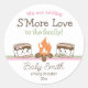 S'More Love design para revelação ou chá de fraldas de gênero de fogueira. Pequenos S'mores têm arco rosa pincelado e gravata verde de arco.