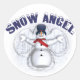 Homem de neve fazer anjo de neve na neve. Texto azul Snow Angel.