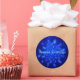 Um tema vitorioso com um enxame de flocos de neve fractais azuis. A leitura de texto "Saudações da Estação" aparece em azul e branco brilhantes.