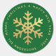 Adesivo Redondo Snowflake Green & Faux Gold Foil Elegant Christmas